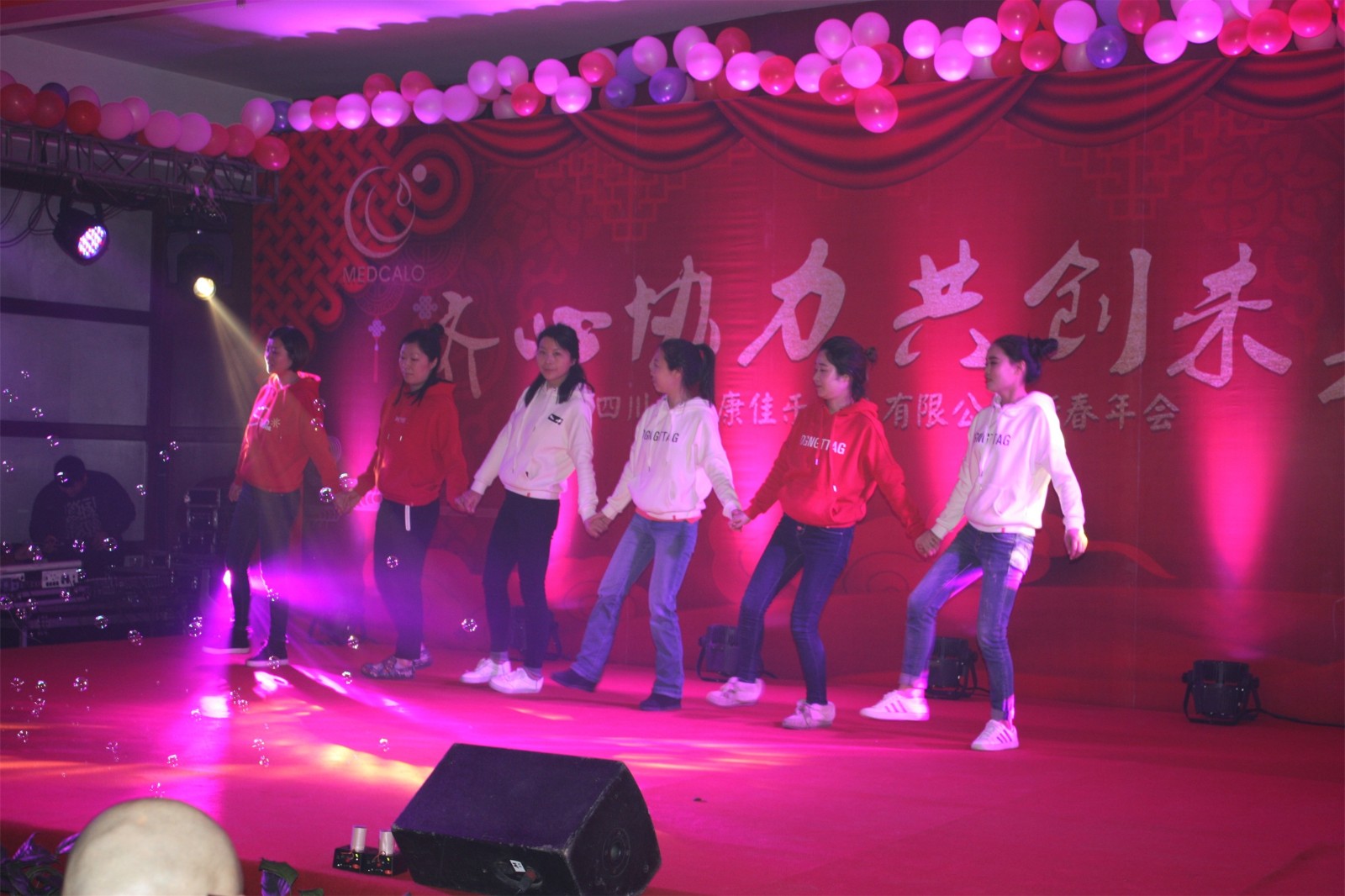 华美的服饰、娇俏的舞者,开场舞美丽中国拉开了新春团拜会的帷幕。小品抢红包把握当下全民互动的热点,把人们抢红包时各式各样的心理、行为等情形刻画得入木三分。营销中心的退伍同胞们表演的朗诵、小合唱咱当兵的人,在新时代中带领我们一同走进他们当初的芳华岁月,QC处员工照自然深情独唱情歌两三首,软袋车间管理层自编的朗诵——佳乐颂,歌颂、感恩这十几年来,大家和公司同舟共济的风雨路、成长路、幸福路,营销内勤自编自演的舞蹈童话镇,步伐轻盈,活泼灵动,仿佛让我们看到童话王国里俏皮的童话人物在给我们讲故事,黄金搭档周禄富和徐豪的相声洗脑2延续了去年的诙谐幽默,小合唱团结就是力量似画龙点睛之笔,提醒我们全体员工要聚力拧起一根绳,勇创新的辉煌。